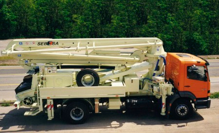 Автобетононасос 28 мBC-3907. PL-28/125-4VХарактеристики Максимальный расход: 90 м³/ч Максимальное давление на бетон: 70 бар Мaкс. расстояние откачки по горизонтали: 400 м Максимальная высота откачки: 100 м Диаметр насосных цилиндров: D.200 x 1600 мм Емкость воронки: 600 л. Емкость бака гидравлического масла: 425 л. Емкость резервуара для воды: 750 л. Общий вес (с пустыми баками): 8700 кг Минимальная мощность: 280 л.с. (132 кВт) Грузовик мин. Необходимые условия - Количество осей: 2 - Общий загруженный вес: 19000 кг - Колесная база: 5000 мм Стрелы-манипуляторы: 4 Макс. длина вертик. подачи: 27.8 м Максимальный горизонтальный радиус: 24 м Диаметр трубы: 125 мм Поворот колонны: 365 º Вращение 1 стрелы: 98 ° Вращение 2 стрелы: 180 ° Вращение 3 стрелы: 260 ° Вращение 4 стрелы: 270 ° Поворот башни через поворотной шестерней |