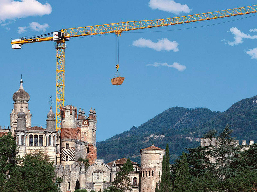 В кранах серии EC-B компактная поворотная часть крана состоит из подъемного и поворотного механизмамов, центрального распределительного щита и опорно-поворотного устройства.