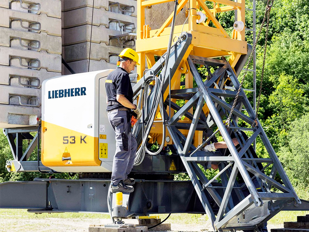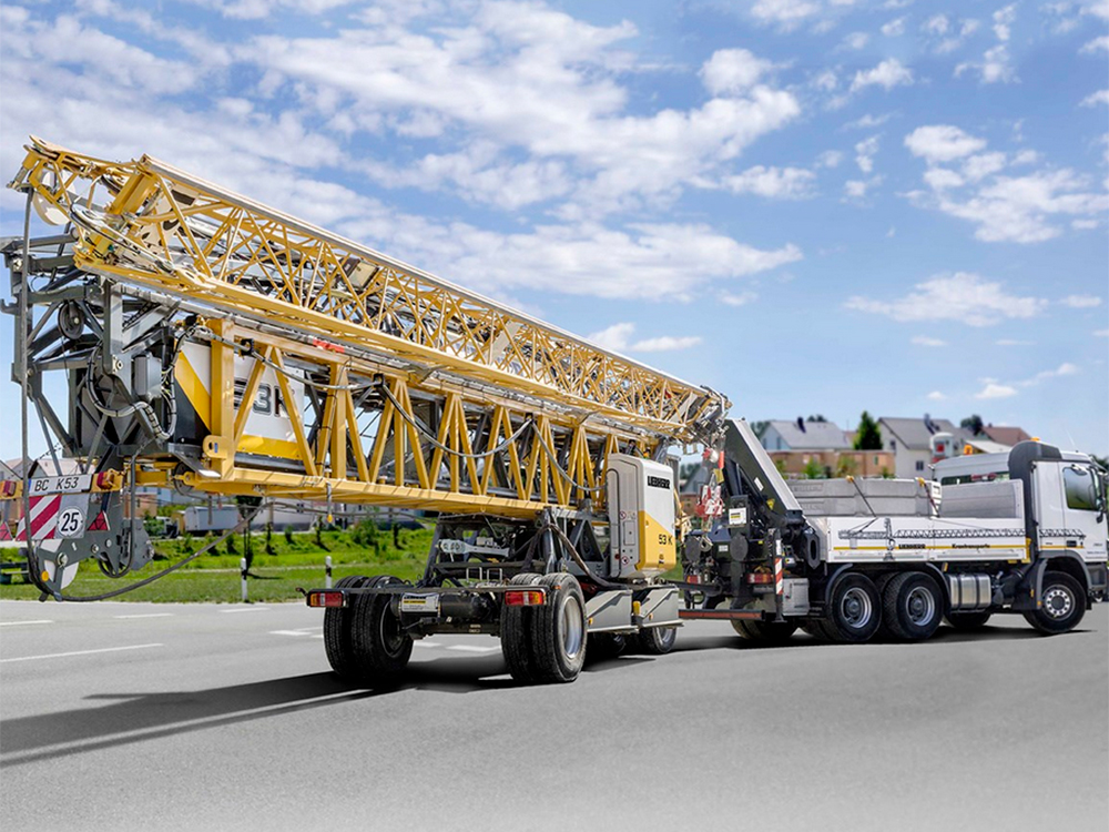 Краны серии 53 К отличаются переменным вылетом стрелы и высотой подвески крюка. С помощью быстродействующего устройства самоподъема выполняется монтаж до трех башенных секций. Таким образом этот быстромонтируемый кран, имеющий семь вариантов высоты подъема крюка, очень легко адаптируется к различным условиям работы. Кран серии 53 K идеально подходит для строительства многоквартирных домов высотой до восьми этажей.