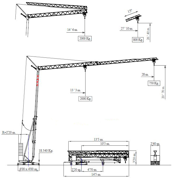 Швидкомонтовані баштовий кран SAEZ H-28 з вантажопідйомністю 2 тонни, даний кран оснащений стрілою - 28 м, вантажопідйомність при максимальному вильоті стріли - 0,75 т. Купити швидкомонтовані баштовий кран SAEZ H 28