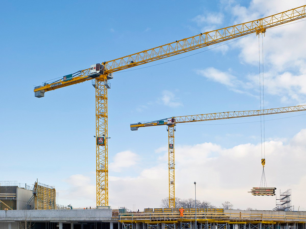В кранах серии EC-B компактная поворотная часть крана состоит из подъемного и поворотного механизмамов, центрального распределительного щита и опорно-поворотного устройства.