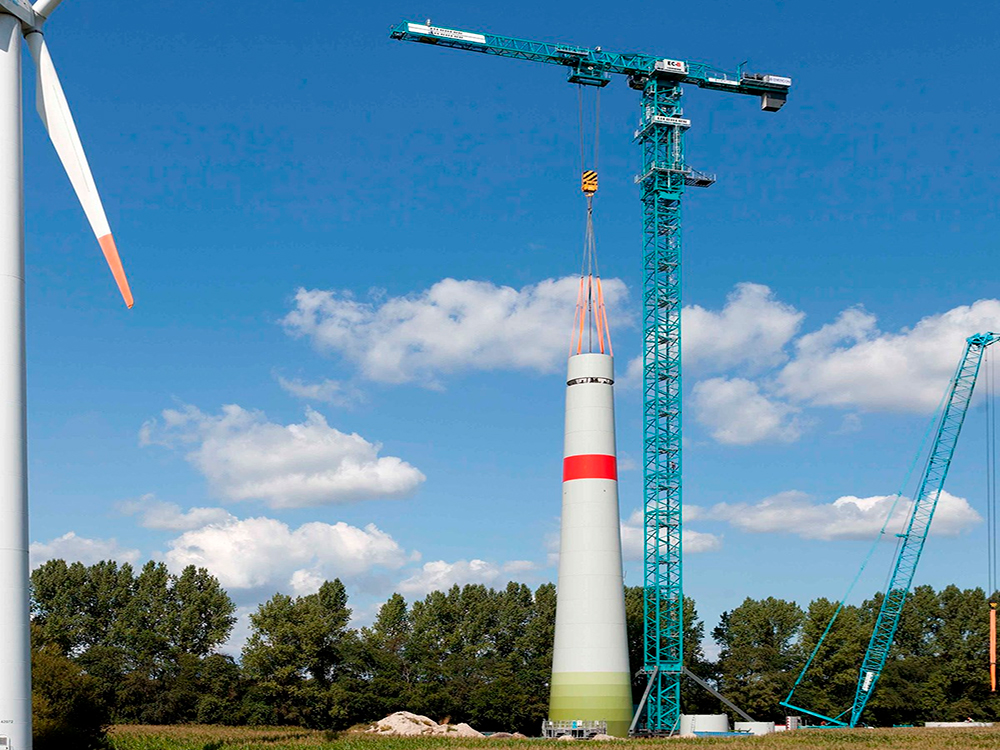 Кран без оголовка предлагает инновационное и исключительно экономичное решение подъема грузов для ветряных электростанций с высотой до центра винта от 120 метров. Для решения других задач, например, строительства электростанций и капитального строительства, можно применять кран без оголовка с вылетом стрелы от 41,5 до 46,5 м. |