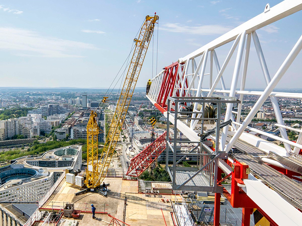 Специальный кран Derrick предназначен для демонтажа кранов на высотных зданиях, опорах мостов или телекоммуникационных вышках.