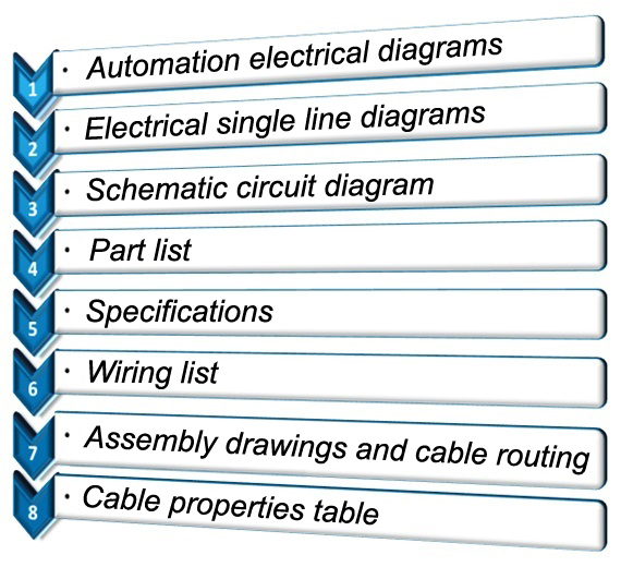 - Development of design documentation, using the latest and most effective tools for the design: EPLAN Electric P8, EPLAN Pro Panel, EPLAN PPE, COMOS, AutoCAD;