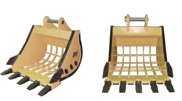 Model | Exca. (Ton) | L Diagonal (mm) | R Height (mm) | T Thick (mm) | W Width (mm) | WT (kg) | Capacity (m3) | Tooth /Adaptor | BKT 06 | 12~15 | 1,030 | 1,200 | 32 | 880 | 450 | 0.7~0.9 | DX140 | BKT 08 | 18~22 | 1,324 | 1,489 | 40 | 930~1,080 | 950 | 0.7~0.9 | DX220 | BKT 10 | 28~31 | 1,438 | 1,560 | 45 | 1,090~1,234 | 1,270 | 1.1~1.3 | CAT325 | BKT 14 | 34~38 | 1,530 | 1,710 | 50 | 1,380 | 1,450 | 1.4~1.7 | CAT235 | BKT 17 | 39~43 | 1,637 | 1,790 | 60 | 1,430 | 1,820 | 1.7~1.9 | CAT245 | BKT 20 | 45~50 | 1,700 | 1,864 | 60 | 1,480~1,840 | 2,700 | 2.0~2.3 | CAT245 | BKT 30 | 52~70 | 2,123 | 2,284 | 70~80 | 1,410~1,710 | 4,500 | 2.5~3.4 | |