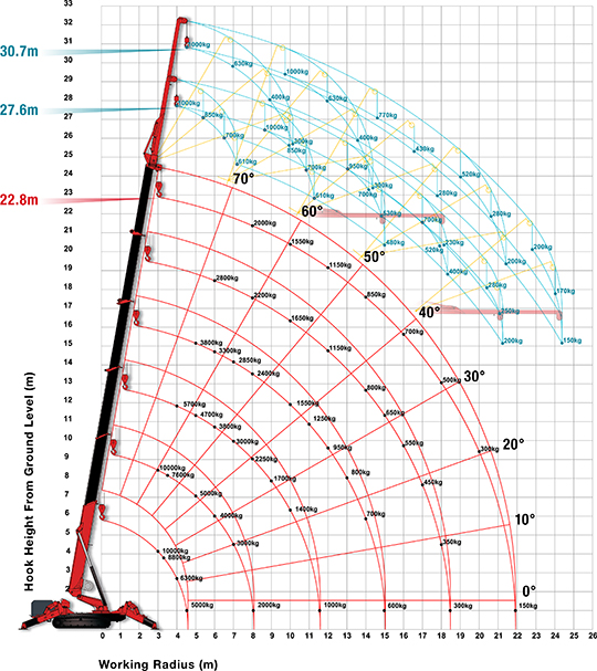 Вантажопідйомність: 10т x 3мМакс.висота підйому: 22.8 мЗагальна ширина: 2 мВага: 14000 кг