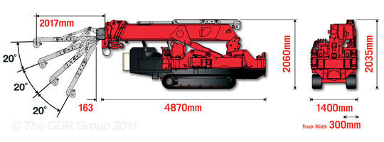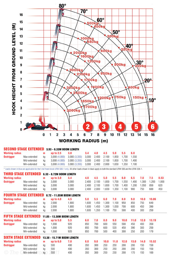 Вантажопідйомність: 3 т x 3.4мМаксимальна висота підйому 16 мЗагальна ширина: 1.4мМаксимальна довжина стріли 15,52 мВага: 4840-4990 кг