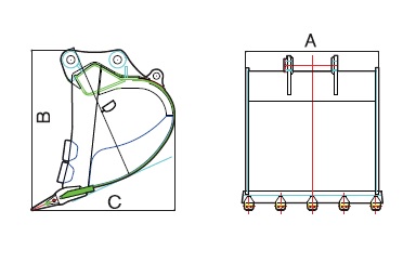 Модель | Еска. (тонн) | L Діагональ (мм) | R Висота (мм) | T Товщина (мм) | W Ширина мм) | WT (кг) | Ємність (м3) | Зуб /Адаптер | BKT 06 | 12~15 | 1,030 | 1,200 | 32 | 880 | 450 | 0.7~0.9 | DX140 | BKT 08 | 18~22 | 1,324 | 1,489 | 40 | 930~1,080 | 950 | 0.7~0.9 | DX220 | BKT 10 | 28~31 | 1,438 | 1,560 | 45 | 1,090~1,234 | 1,270 | 1.1~1.3 | CAT325 | BKT 14 | 34~38 | 1,530 | 1,710 | 50 | 1,380 | 1,450 | 1.4~1.7 | CAT235 | BKT 17 | 39~43 | 1,637 | 1,790 | 60 | 1,430 | 1,820 | 1.7~1.9 | CAT245 | BKT 20 | 45~50 | 1,700 | 1,864 | 60 | 1,480~1,840 | 2,700 | 2.0~2.3 | CAT245 | BKT 30 | 52~70 | 2,123 | 2,284 | 70~80 | 1,410~1,710 | 4,500 | 2.5~3.4 | |