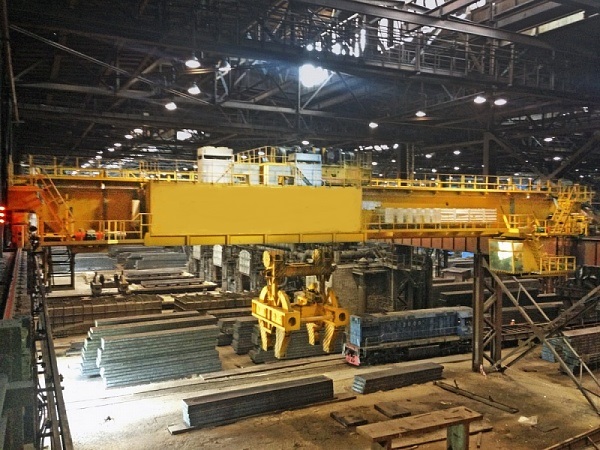 Механические клещи для клещевого крана могут быть оснащены автомеханическим захватом и оборудованы 2-мя, 4-мя или 6-ю парами захватных лап. При управлении такими клещами не требуется применение ручного труда, поскольку автоматическая защёлка фиксирует клещи в открытом состоянии и автоматически отключает блокировку при опускании на сляб. При использовании моторизованных клещей грузозахватные операции осуществляются с помощью дополнительного привода. Мостовые специальные клещевые краны применяются для обслуживания нагревательных печей и подачи нагретых слитков к прокатному стану. Кроме основных технологических операций по перемещению слябов, клещевые краны при помощи вспомогательного подъёмного механизма могут выполнять и другие подъёмно-транспортные операции. Клещевые краны, имеют исполнение с вращающейся тележкой, имеющей верхнюю поворотную часть, и траверсой с установленными на ней клещами. Клещи могут быть оборудованы вращающейся головой, обеспечивающей вращение вокруг вертикальной оси. При компоновке узлов крана мы принимаем во внимание технологическую специфику производства заказчика, а также индивидуальные требования, отражённые в техническом задании на кран. При производстве мостового клещевого крана мы используем комплектующие ведущих производителей и проверенных поставщиков. Ниже приведены технические характеристики базовой линейки мостовых клещевых кранов. По вашему желанию значения параметров могут быть изменены, для этого заполните опросный лист на мостовой специальных клещевой кран. |