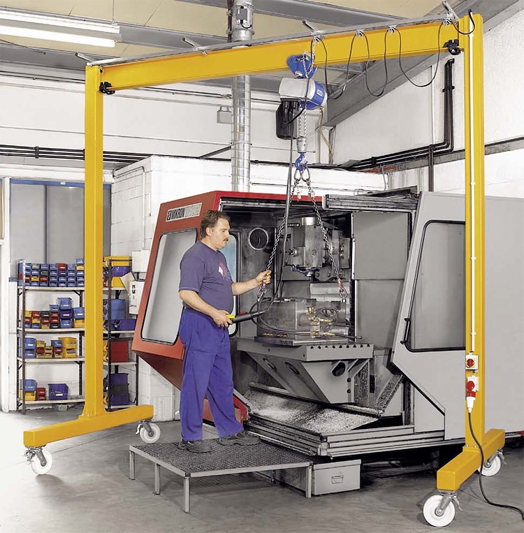 ТИПОВАЯ КОНСТРУКЦИЯ ЛЕГКИХ РУЧНЫХ КОЗЛОВЫХ КРАНОВКозловой ручной кран состоит из двух вертикальных опор с раскосами, между которыми закреплена горизонтальная балка. Основные несущие элементы могут иметь разную конфигурацию. Для стоек, в основном, применяются трубчатые или коробчатые конструкции, часто телескопического типа. В качестве несущего моста устанавливается двутавровая балка или труба круглого или прямоугольного сечения. Выбор профиля несущих конструкций зависит от грузоподъемности передвижного крана и сферы его использования. Также это связано с типом применяемого подъемного устройства. Ручные передвижные краны очень легко монтируются бригадой в 2-3 человек в течение 30-45 минут практически без применения специальных сложных инструментов. Они состоят из 8 – 10 отдельных частей, которые легко стыкуются и закрепляются зажимами, болтами или специальными замками.