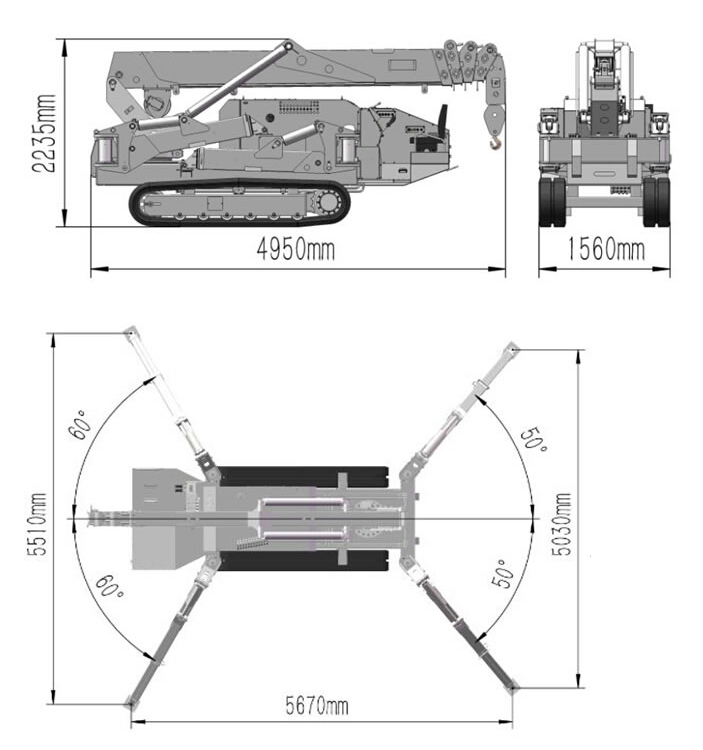 Вантажопідйомність: 5т * 2мМаксимальний робочий радіус 16м*0,21тМаксимальна висота підйому 16,8мМаксимальне опускання 20,5мГабарити (Д х Ш х В) 4950мм х 1560мм х 2235ммВага: 6000кг