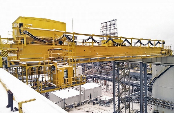 Overhead grab cranAn overhead grab crane is used for reloading, lifting and transporting bulk, bulk or lumpy materials using a rope or mounted electromechanical or electro-hydraulic grab. Overhead grab cranes with mounted grab are equipped with a locking mechanism built into the grab design. In this case, a cable winch is installed on one of the traverse, equipped with a lever-screw or hydraulic system for tightening the traverse. |