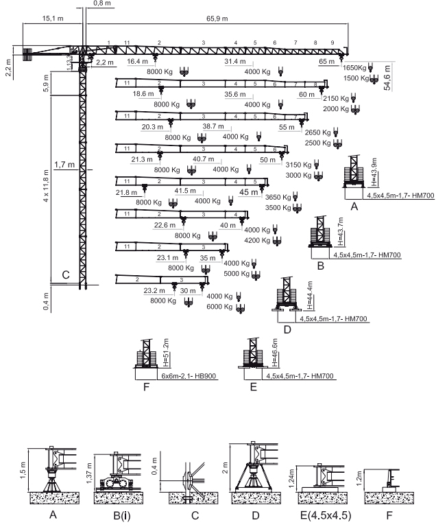 Башенный кран без оголовка Saez TLS 65 8т с грузоподъемностью 8 тонн, данный кран оснащен стрелой - 65 м, грузоподъемность при максимальном вылете стрелы - 1,5 т.