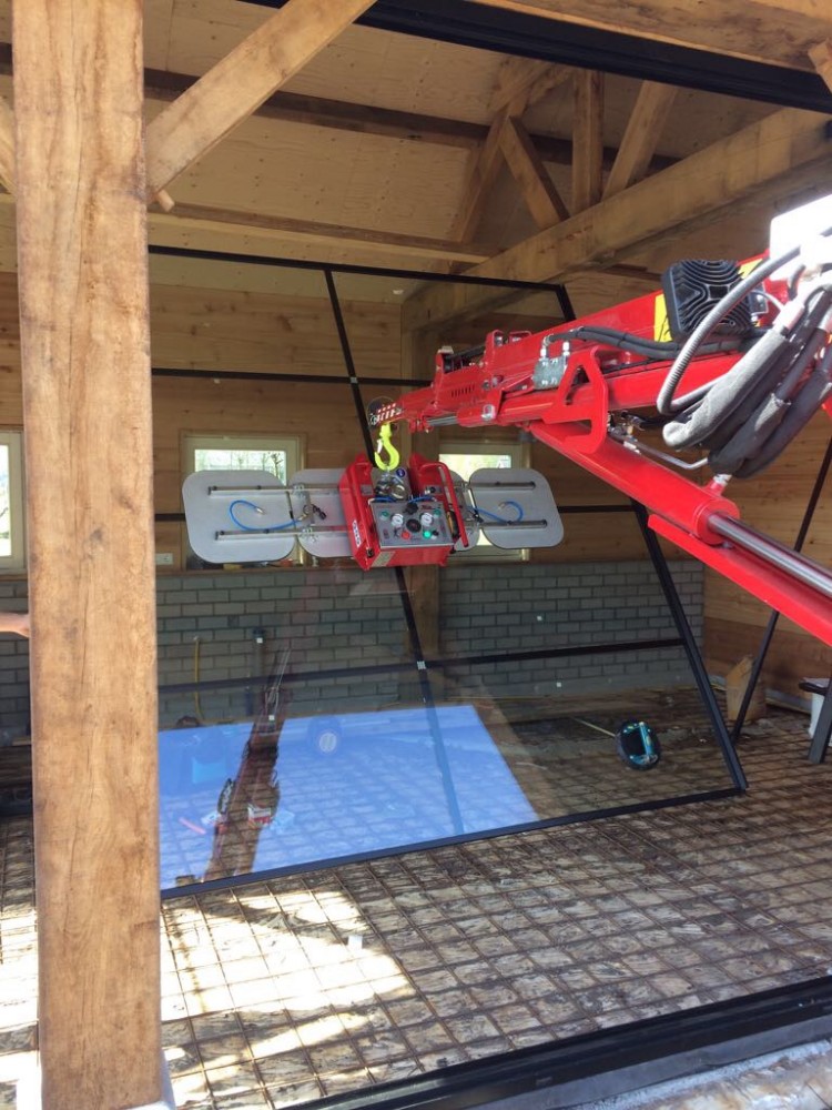 Вакуумне захоплення (присоски) для скла VL500Вантажопідйомність 500 кгВакуумне захоплення для скла має радіокерування. Це дозволяє керувати монтажем скла акуратно точно на великій висоті та у складній обстановці. Всмоктуючі чашки знімні. Ви також можете вставити додаткові присоски для довгого скла. Також добре працює для захоплення невеликого скла зі скляної стійки. Великі вакуумні буфери забезпечують швидке встановлення. Інші переваги: